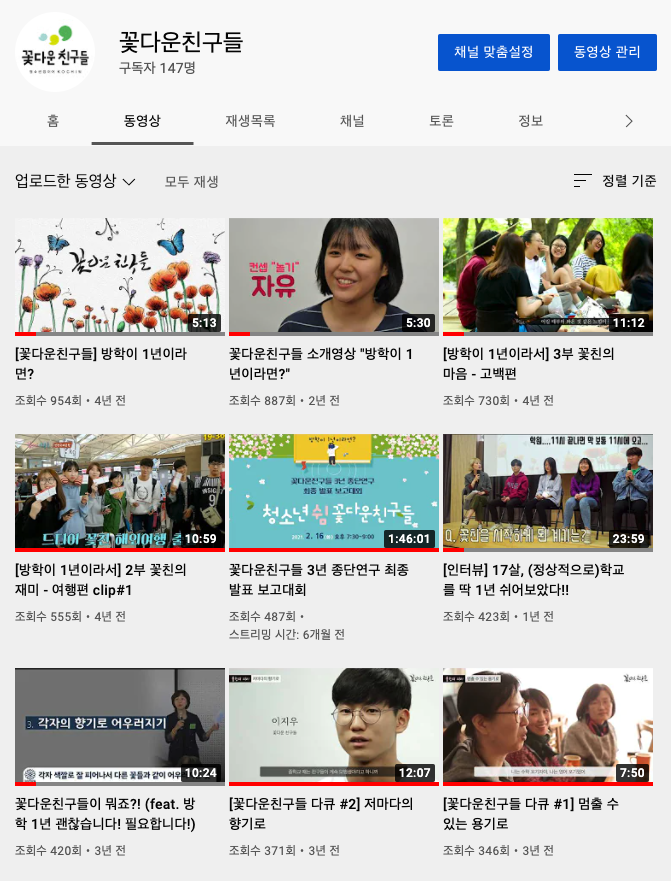 1. 꽃다운친구들 소개 영상 (2016년 제작, 2018년 업데이트)