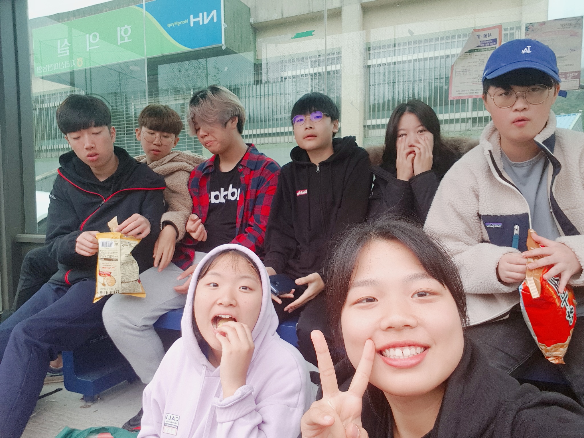 10 월 18 일 금요일, 여행이 끝나는 날. 뺏겼던 휴대폰을 받은 아이들 문자를 하고, 사진을 찍고, 게임을 한다. 다들 집에 돌아가면 할 말이 많은 듯한 얼굴들이다. 점심을 먹고 여행을 마무리한 아이들은 버스정류장에 남겨졌다. 과자를 먹으며 다같이 버스를 기다린다. 그리고 아이들은 집에 가는 버스를 탄다.