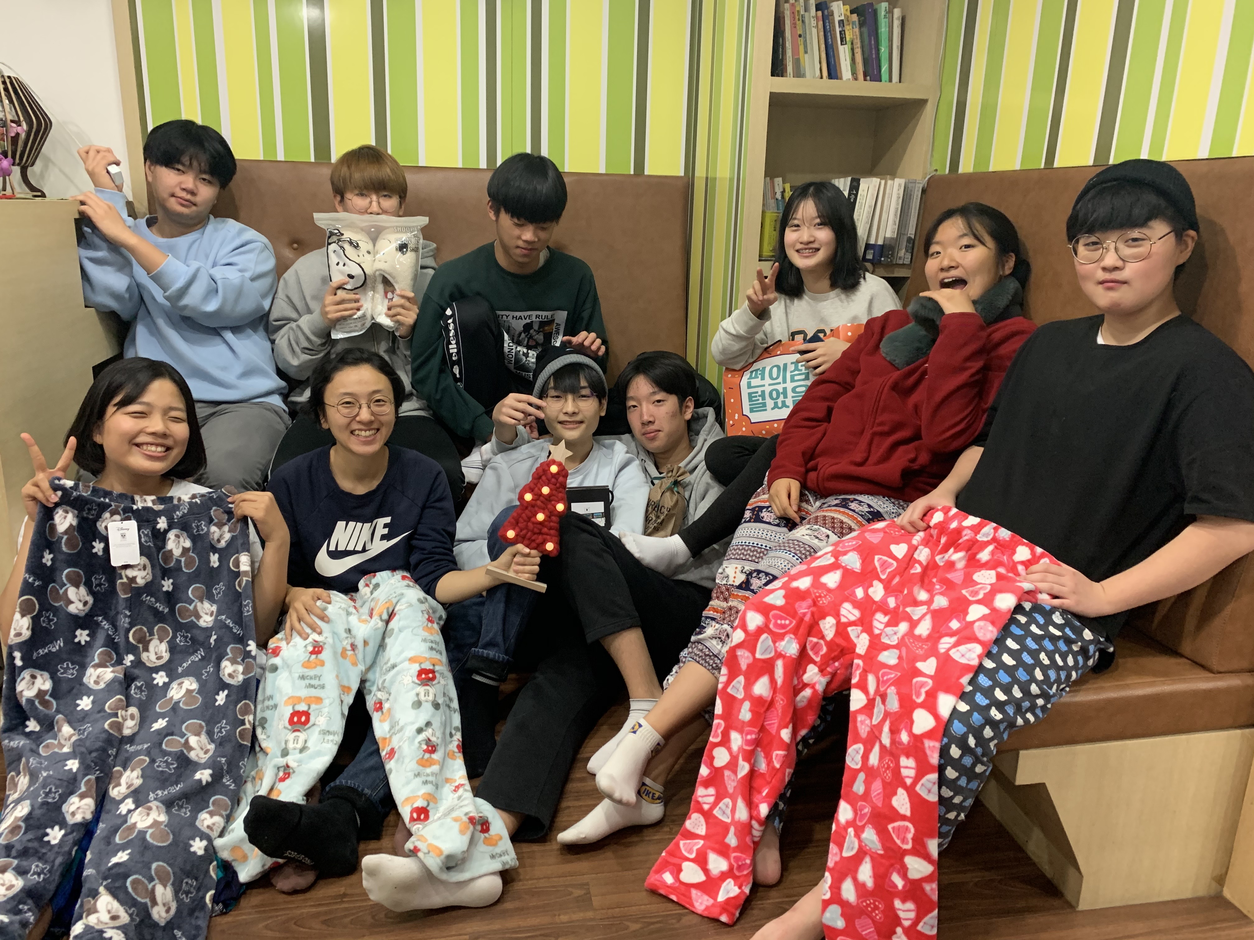 안녕식을 마쳤지만 꽃친놀이터에 모인 꽃치너들. 마지막 꽃치너데이를 즐기기로 했어요. 포트럭으로 간식도 가져오고, 크리스마스 선물도 교환하고 게임도 실컷, 영화도 보며 함께라서 따뜻한 2019년 크리스마스 이브 아침을 맞이했답니다.