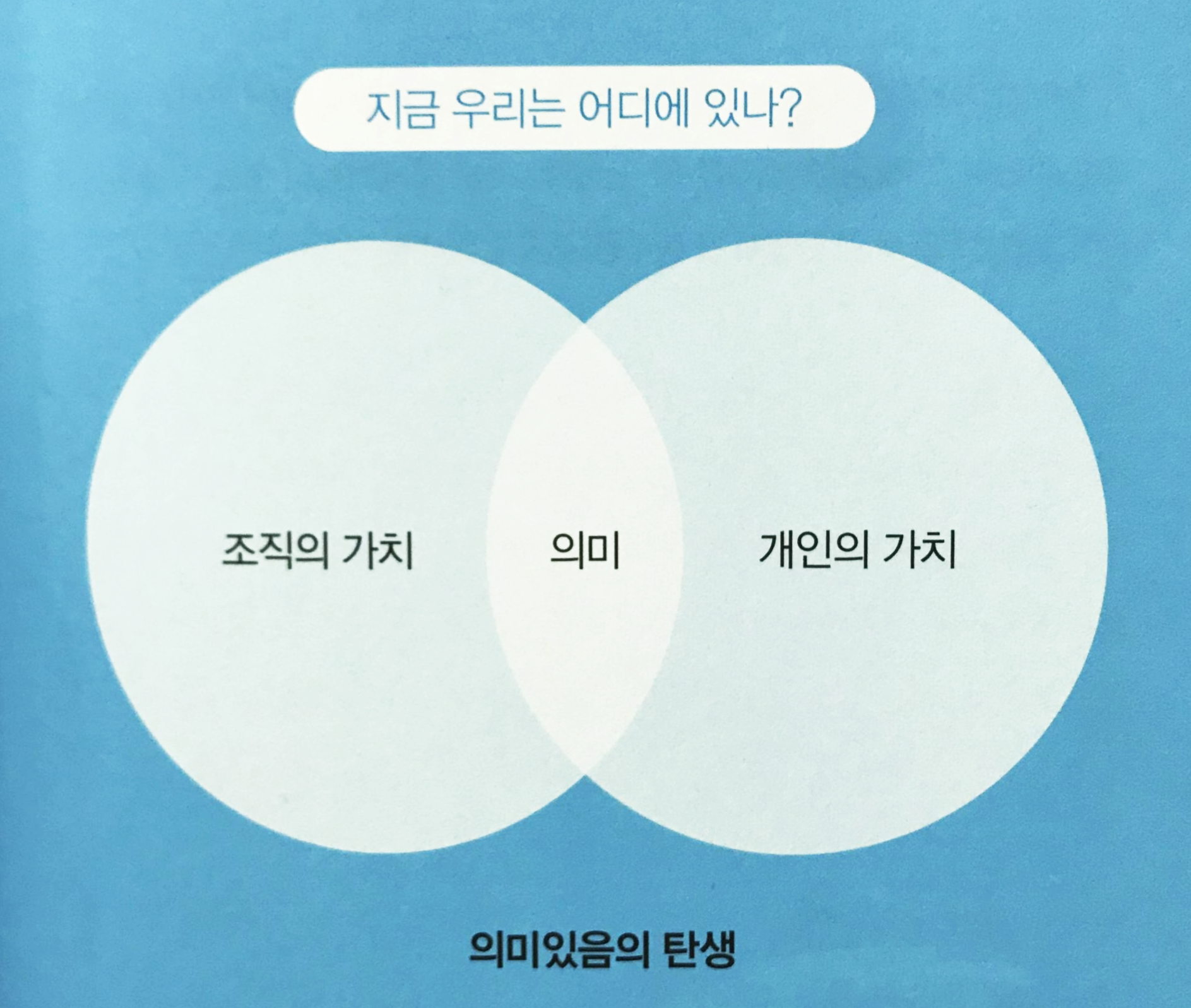 "조직의 가치와 개인의 가치가 중첩되는 곳에서 의미가 생겨납니다."