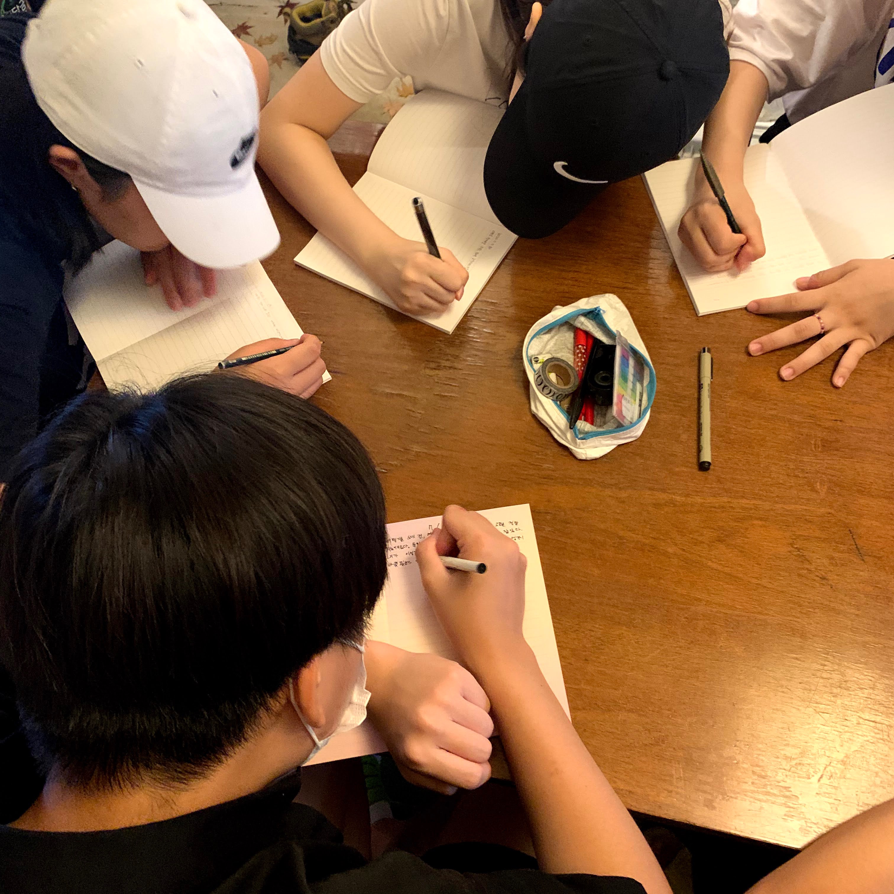 각자 자기 노트에 여행에서 느낀 점들을 적고 난 뒤 열 글자 소감 나누기를 했습니다.