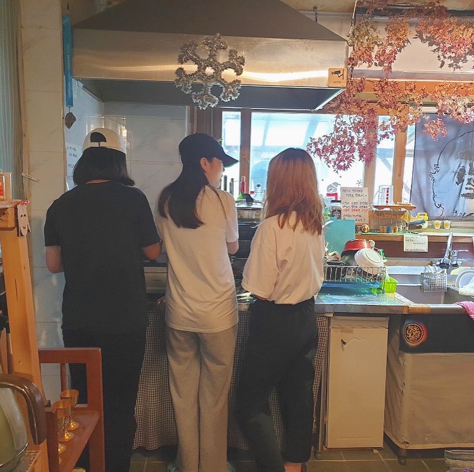 출발 당일 아무도 늦지 않는 기적이 일어났답니다. 답답해도 마스크를 꼭 쓰고 버스에 앉아 3시간. 그렇게 양양에 도착하니 해가 반짝 하는 하늘이 우리를 반겨주었습니다. 점심은 양양 시장에서 유명한 송이버섯 옹심이! (하지만 청소년들이 그리 좋아하는 메뉴는 아니었던 것으로... 하하..) 다소 지친 몸이 되어 누룽지게스트하우스의 '밥 삼촌'을 만났고 차를 타고 숙소로 향했습니다. 그런 게 이게 웬일! 숙소가 너무 예쁜 거예요~! 한옥을 개조해서 만든 누룽지게스트하우스에는 여러 배낭여행자들이 다녀간 흔적이 가득했습니다. 이런데 와본 청소년이 또 있을까?! 왠지 꽃치너들도 배낭여행자가 된 것 같은 느낌이었어요.