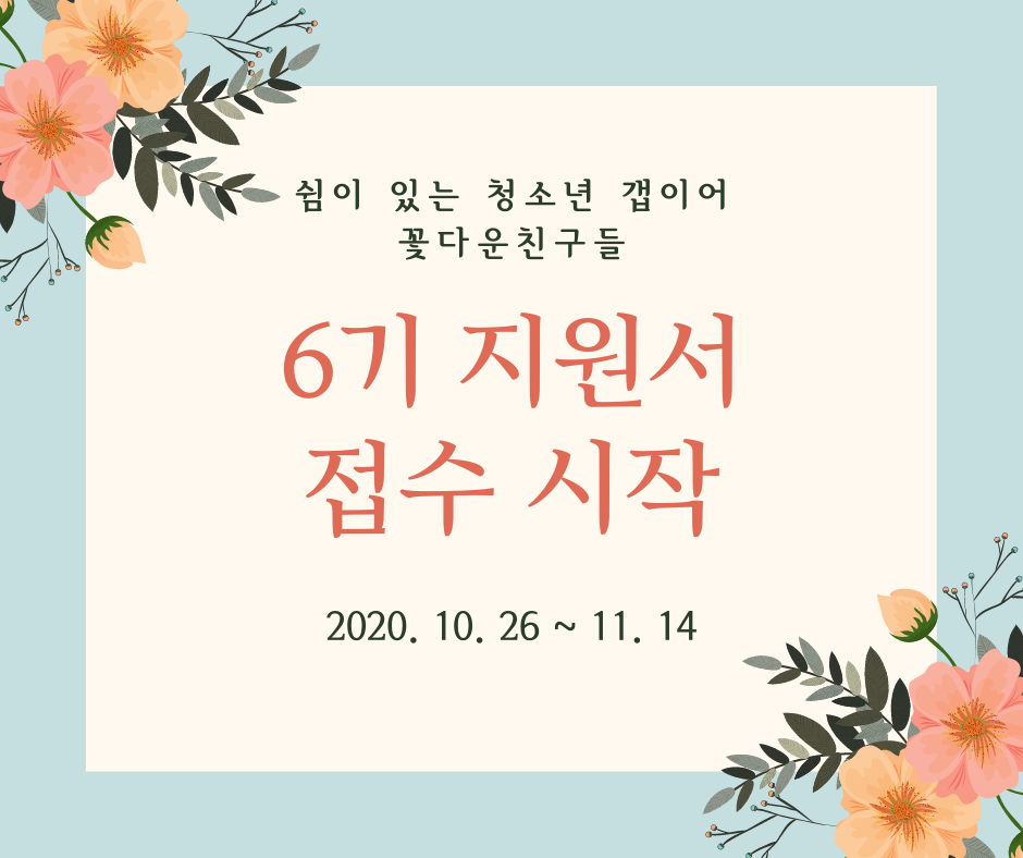 창조적 쉼을 통해 인생의 힘을 기르는 청소년 갭이어 "꽃다운친구들" 6기 지원서 접수가 시작되었습니다.