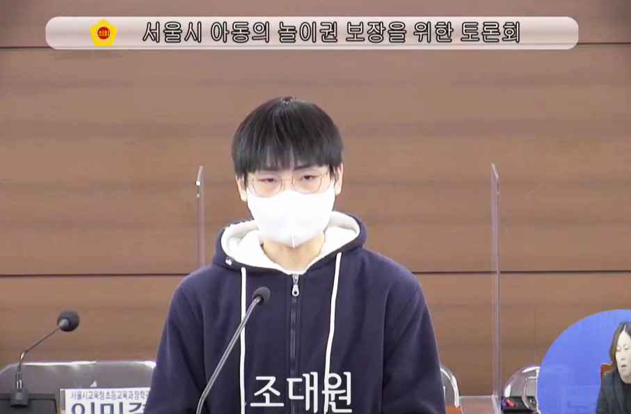 지난 금요일, 서울시의회에서 열린 <서울시 아동의 놀이권 보장을 위한 토론회>에서 꽃친 4기의 조대원 친구가 고등학생 대표로 발제를 했습니다!