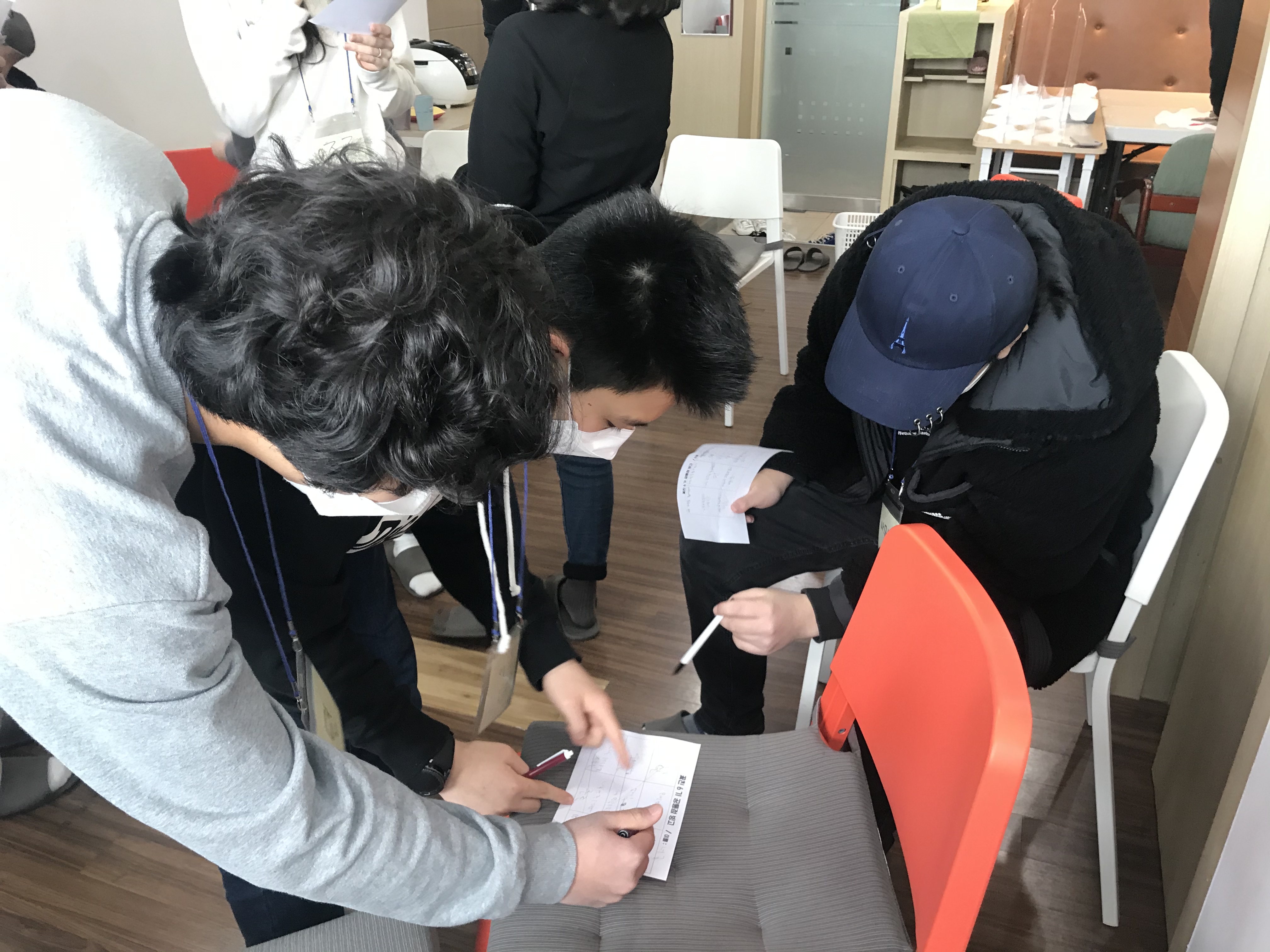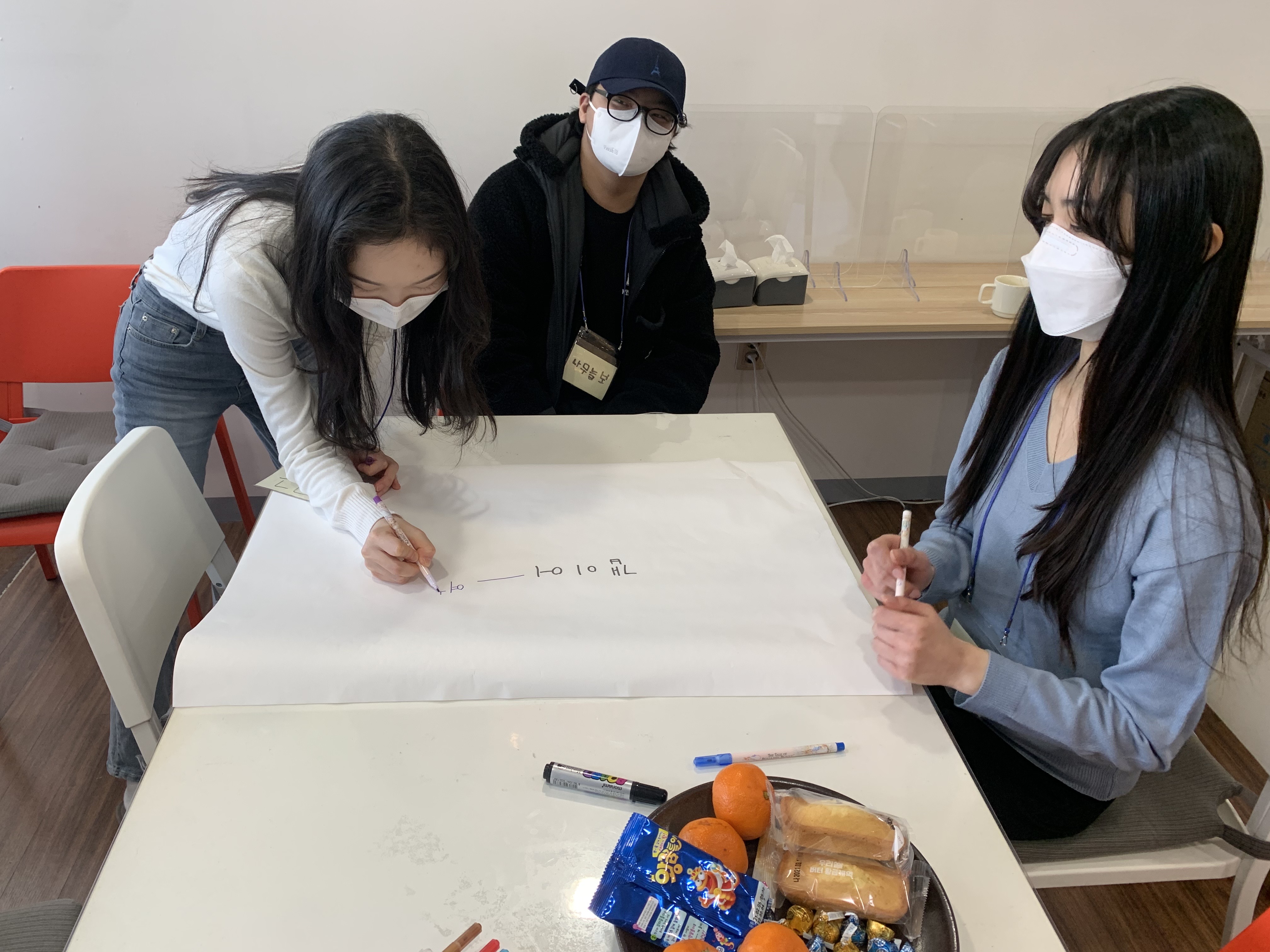 써클로 둘러 앉아 처음으로 자신의 이야기를 들려주고 나서는 즐거운 게임을 했습니다. 몸을 움직이는 게임을 하면서 서로 부딪히기도 하고 팀게임을 하면서 머리를 맞대다 보니 점점 우리 마음의 거리가 좁혀지는 것을 느낄 수 있었습니다. 제가 제일 기억에 남는 게임은 팀원들이 돌아가면서 짧은 시간 안에 영화 제목을 그림으로 표현하면 한 명이 그 제목을 맞추는 게임이었는데요, 천재적인 그림 실력과 맞추기 실력을 엿볼 수 있는 시간이었습니다!