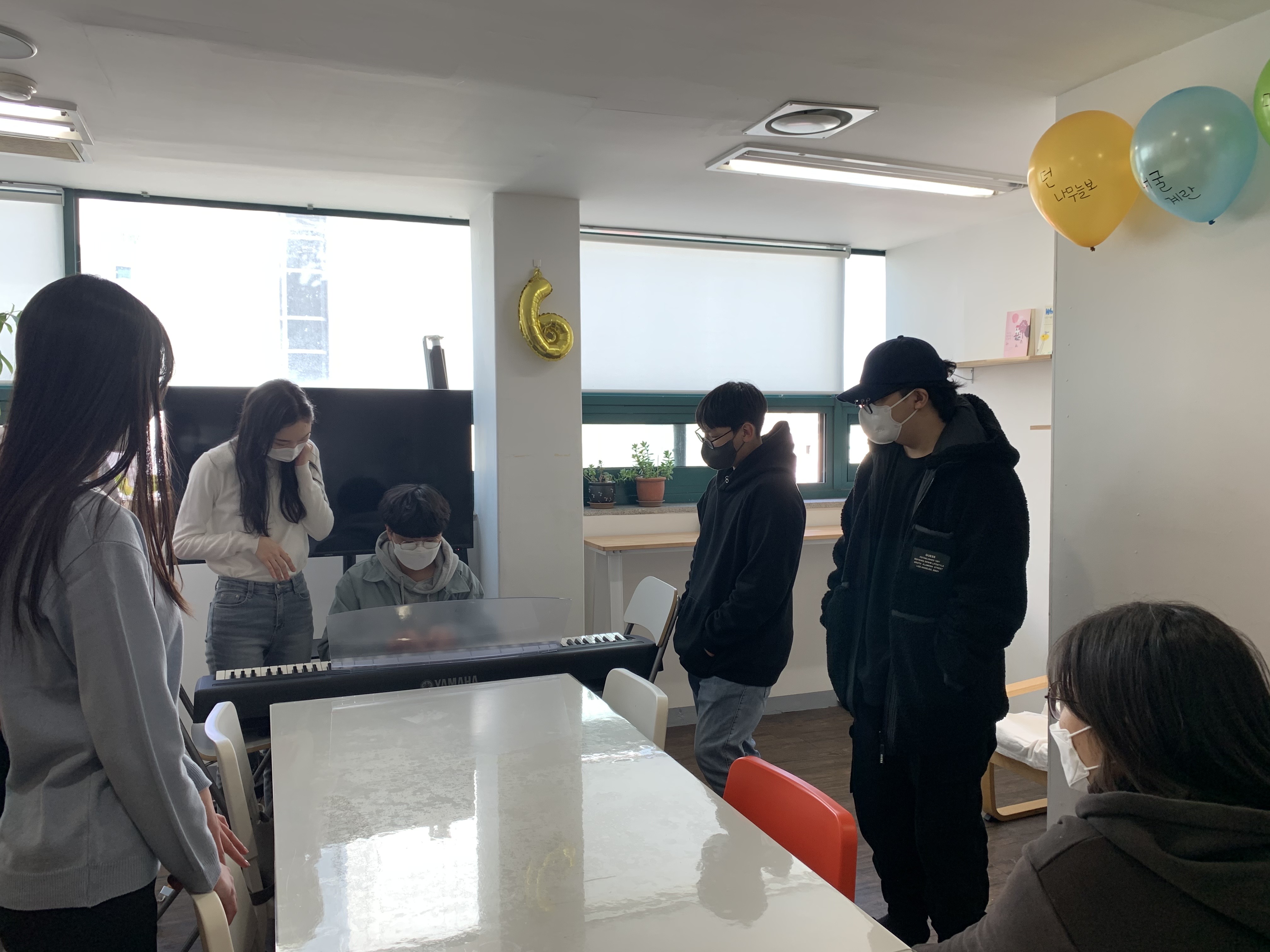밥 먹고 와서는 함께 노래하는 시간을 잠시 가졌어요. 오늘의 싱어롱 선곡은 '너의 의미'와 '쉼이 필요해'입니다. 노래는 자고로 함께 할 때 그 의미가 더 살아나는 법! 앞으로 1년 동안 다양한 노래를 함께 불러볼 수 있길 바래요~