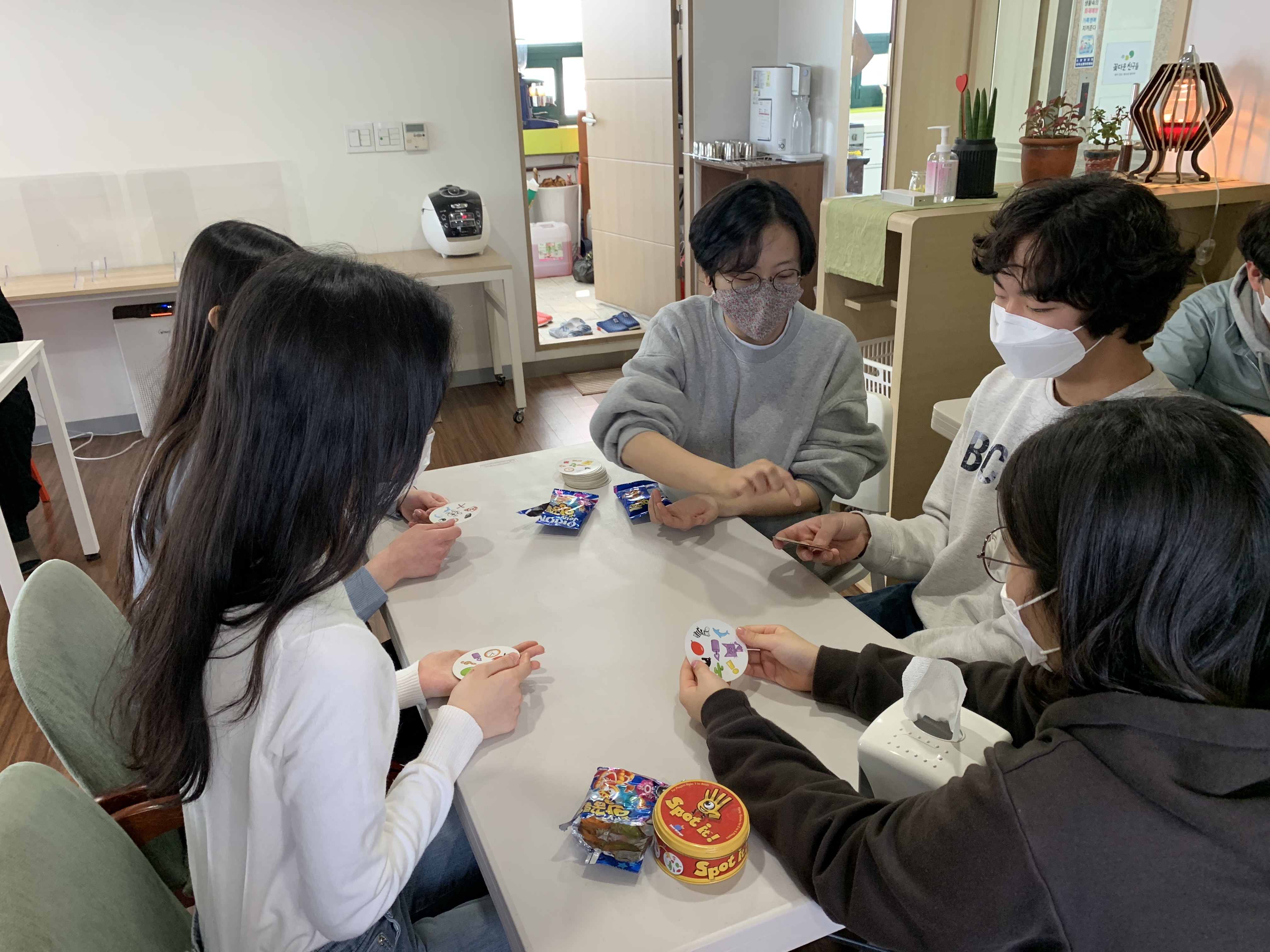 함께 만들어서 더 맛있는 떡볶이를 흡입하고 설거지까지 야무지게 마치고 나니 이제 집에 갈 시간입니다! 아참! 가기 전에 한 가지 할 일이 더 남았어요. 바로 마니또에게 선물 주기인데요, 오늘의 선물은 아주 특별합니다. 바로 칭찬 선물이거든요. 오늘 하루 동안 활동하는 모습을 보고 각자의 마니또에게 칭찬과 격려를 해주었습니다~