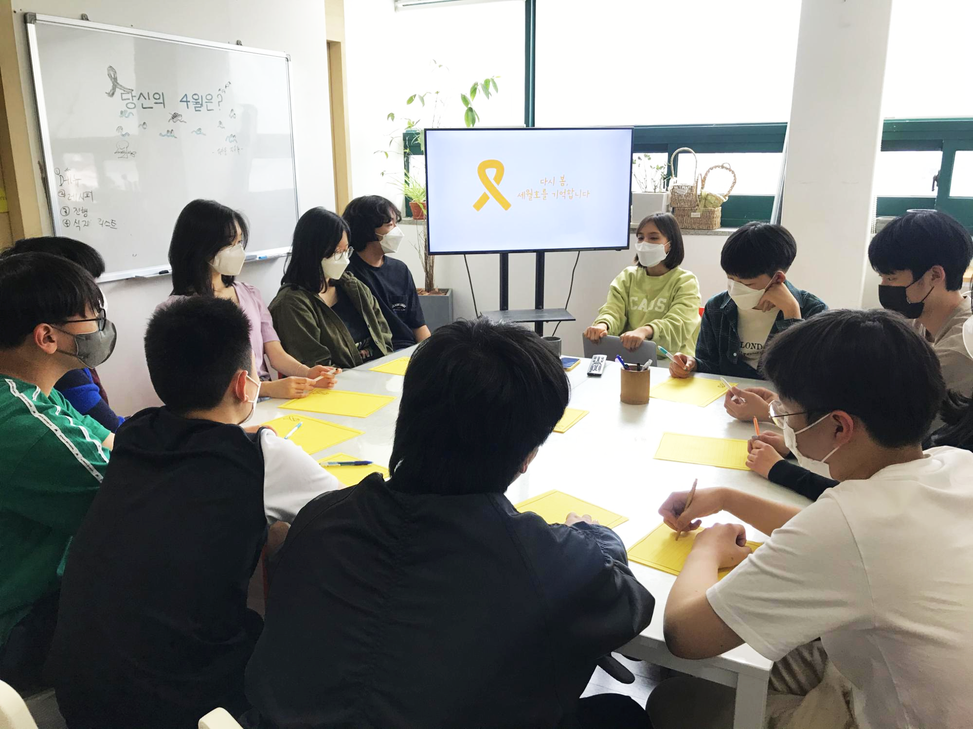 각자 집에서 가족들과 영화를 보고 나서 함께 모여 세월호 참사에 대해 이야기하는 시간을 가졌습니다.