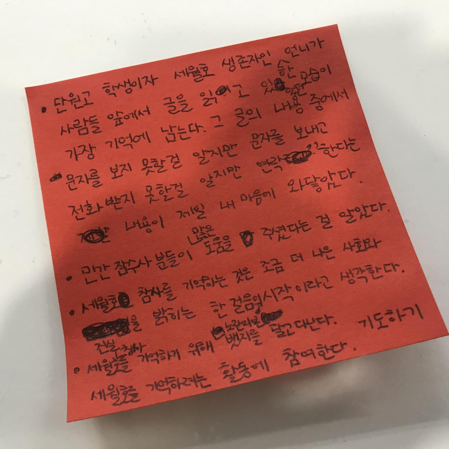 3. 세월호 기억 활동 소감 쓰기