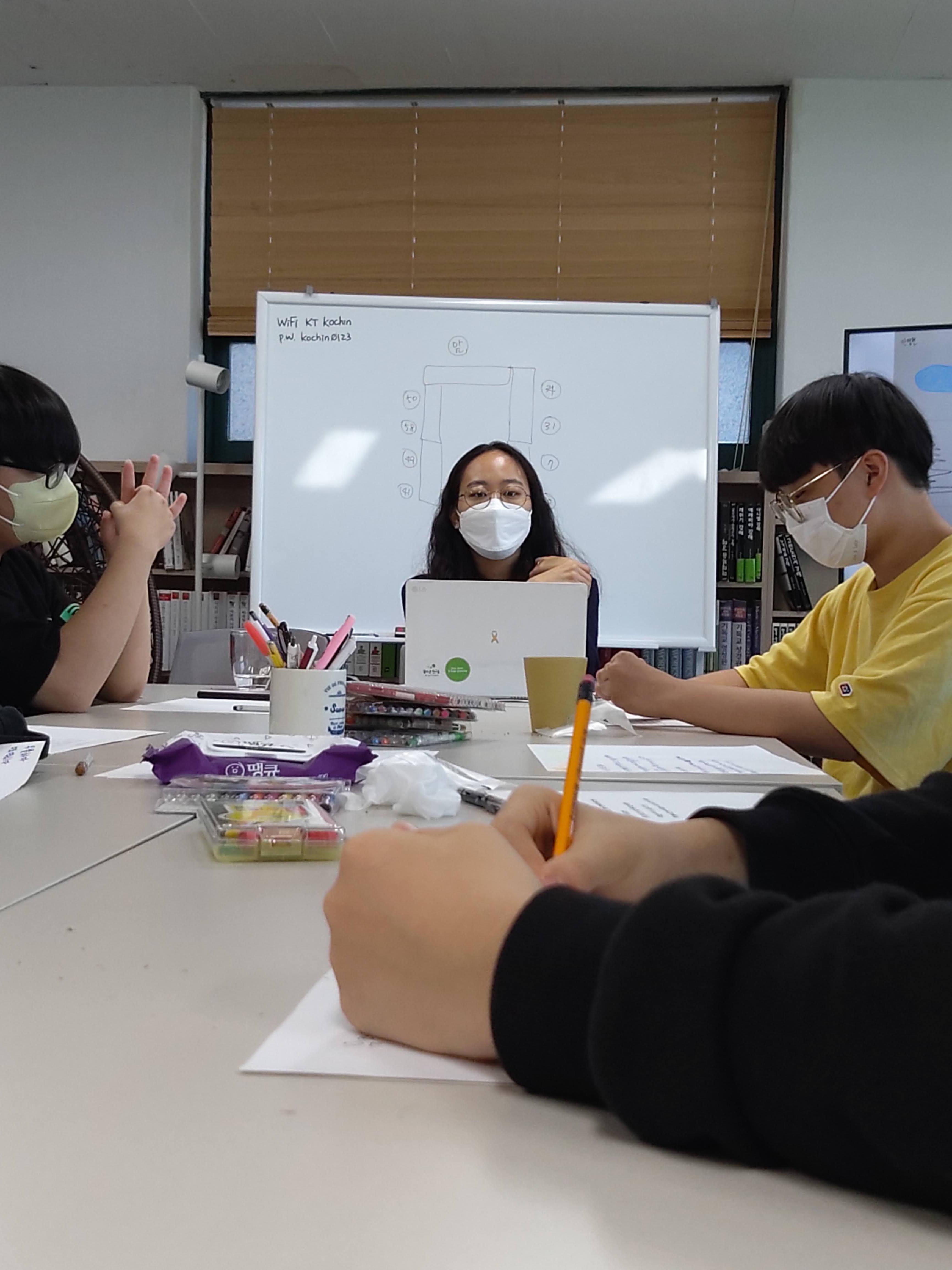 꽃치너들은 '감정'이라는 추상적인 개념을 그림으로 표현하는 것을 매우 어려워하기도 했지만 완성된 그림과 글을 함께 공유하고 해석을 들으면서는 이내 이 과정에 빠져들게 되었어요.