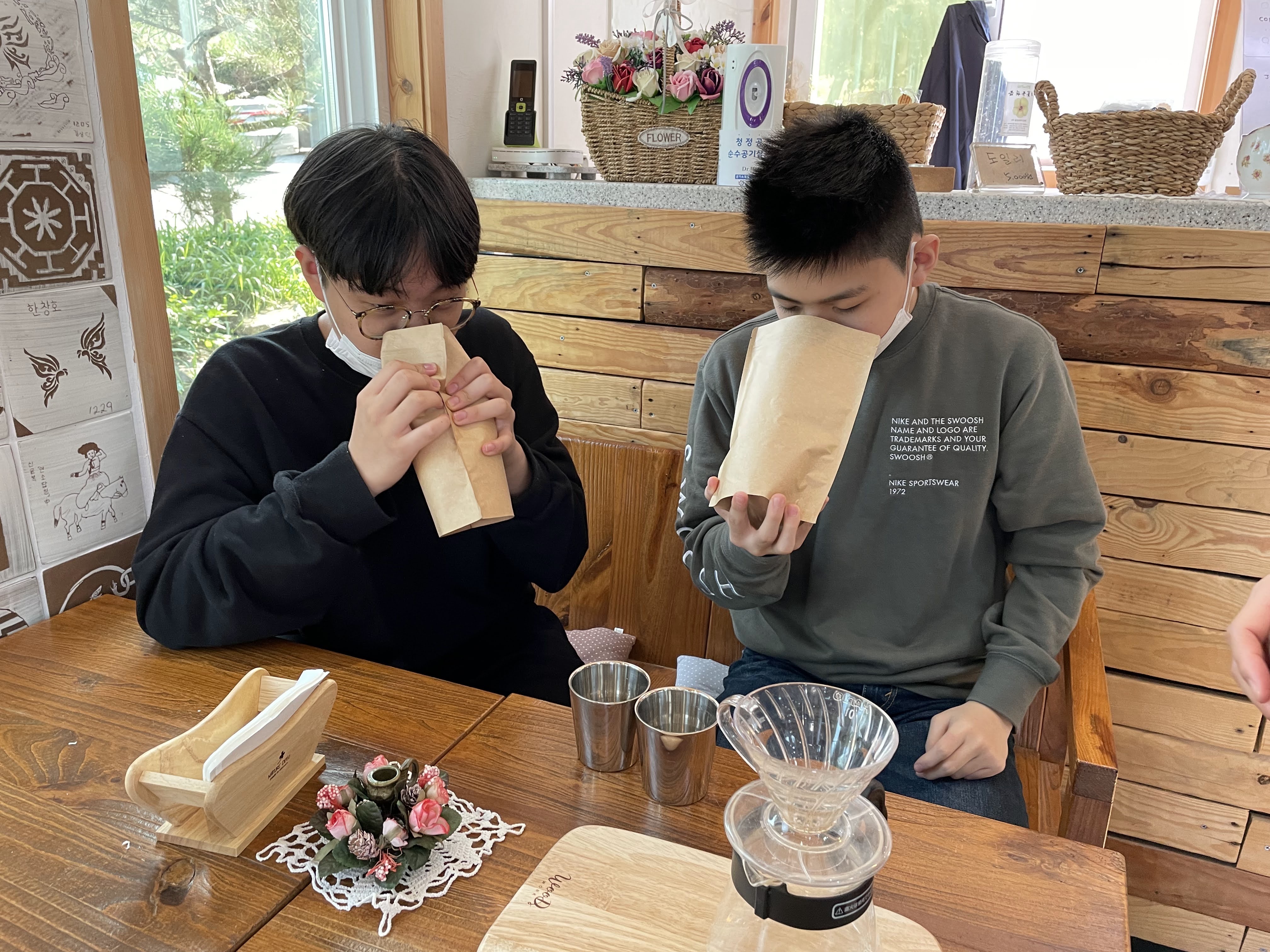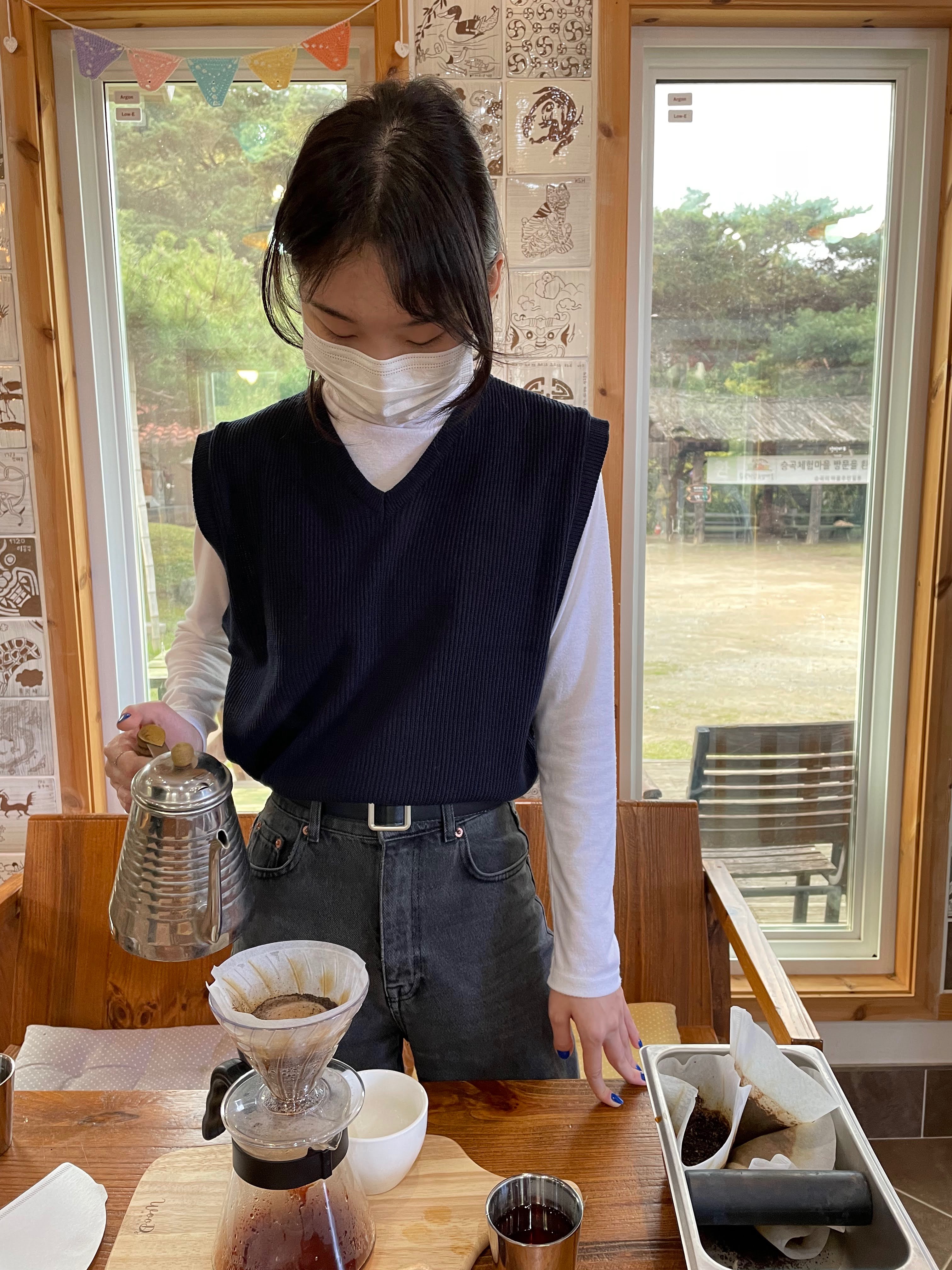 오후에는 커피 내리기 수업과 사과따기 체험을 했답니다. 커피향에 취하고, 사과향에 또 취하는 하루!