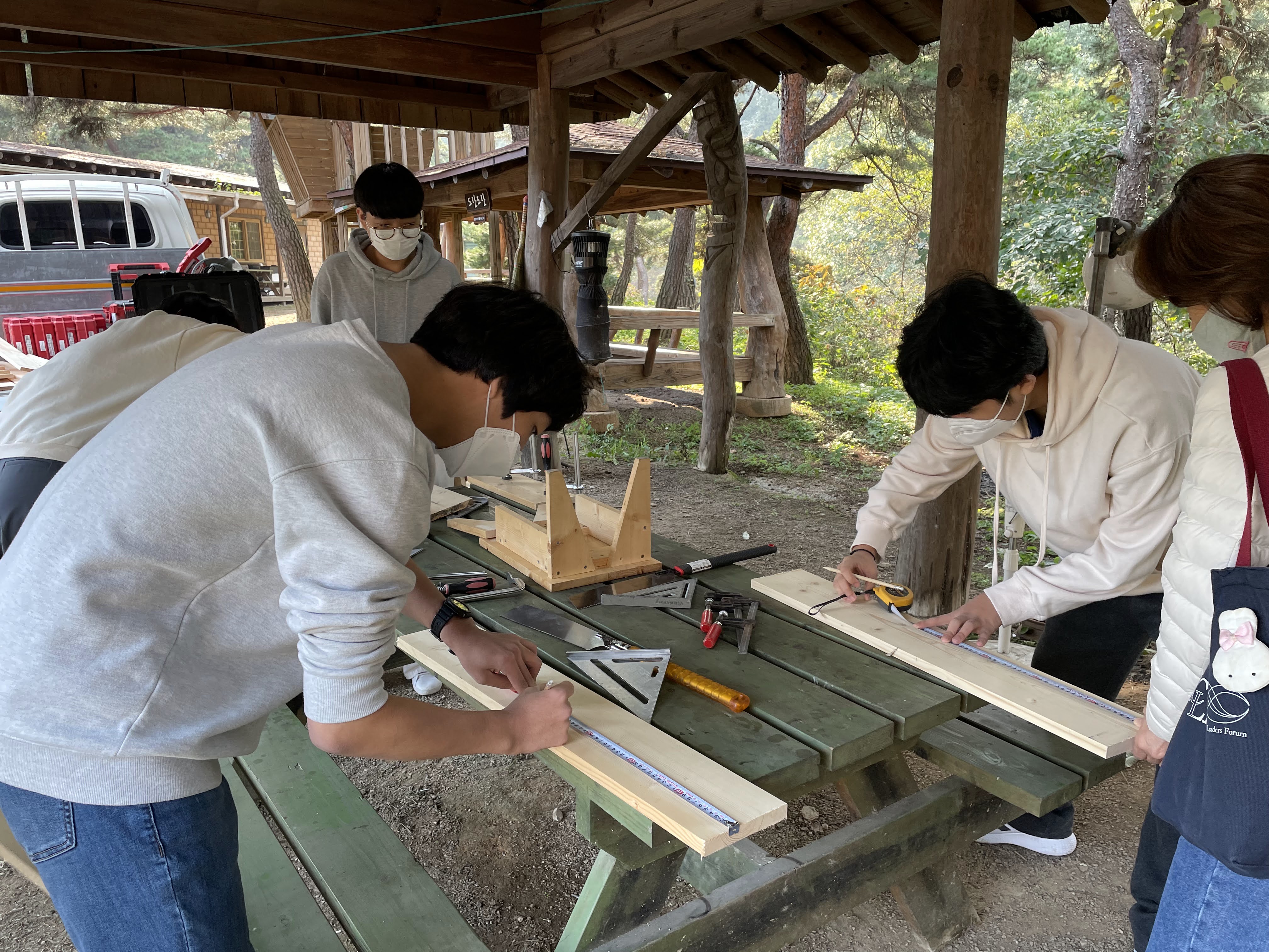 3시간이 걸려 상주에 도착한 뒤 시원한 웰컴 드링크와 함께 상주의 승곡체험마을 소개를 받았습니다. 이곳이 우리가 3일 동안 머무를 곳이에요! 첫날은 목공수업을 하고 잠시 쉬었다가 저녁엔 심혈을 기울인 라면 대회가 열렸습니다. 밤산책까지 완벽하게 마친 첫날!
