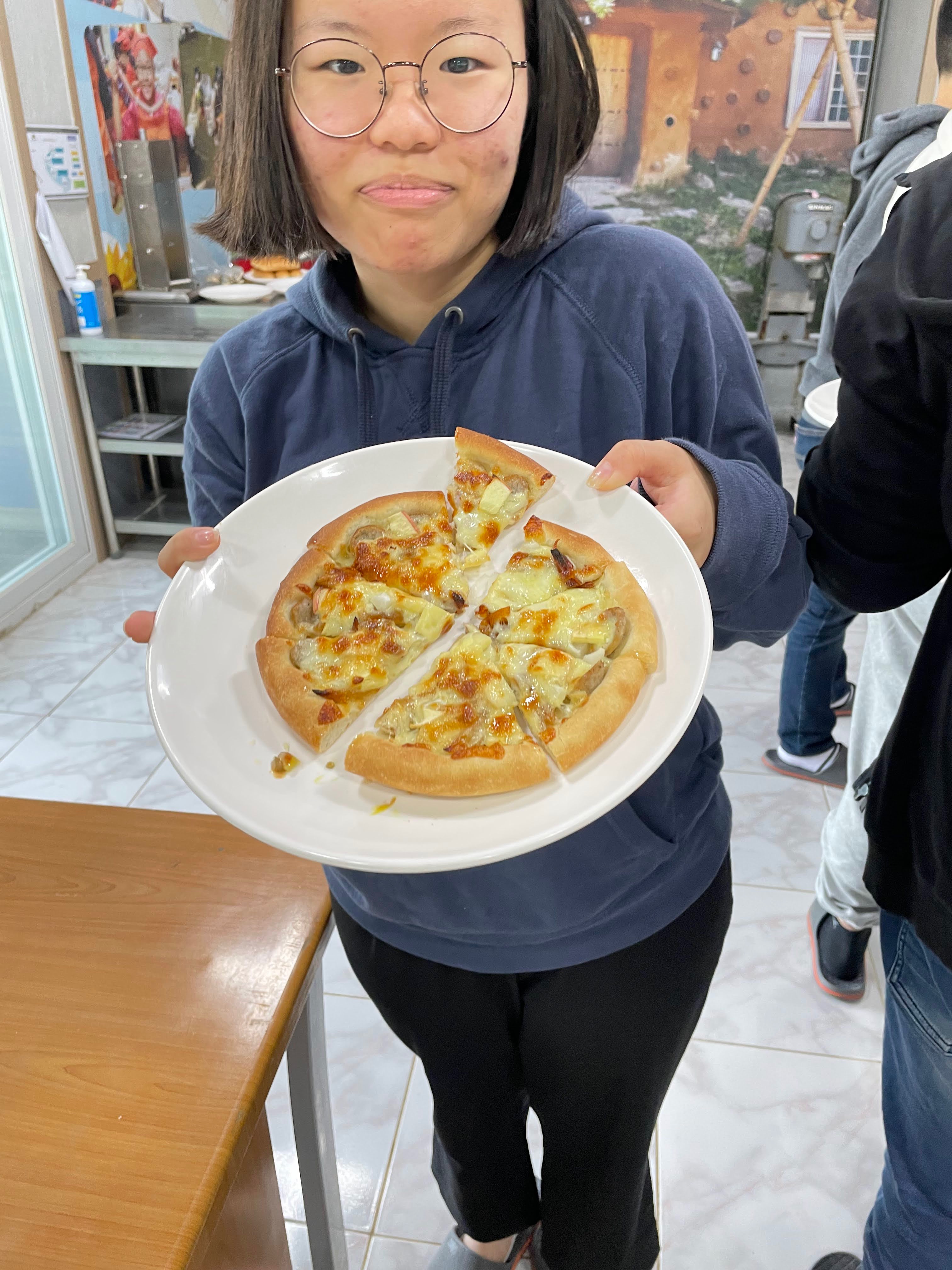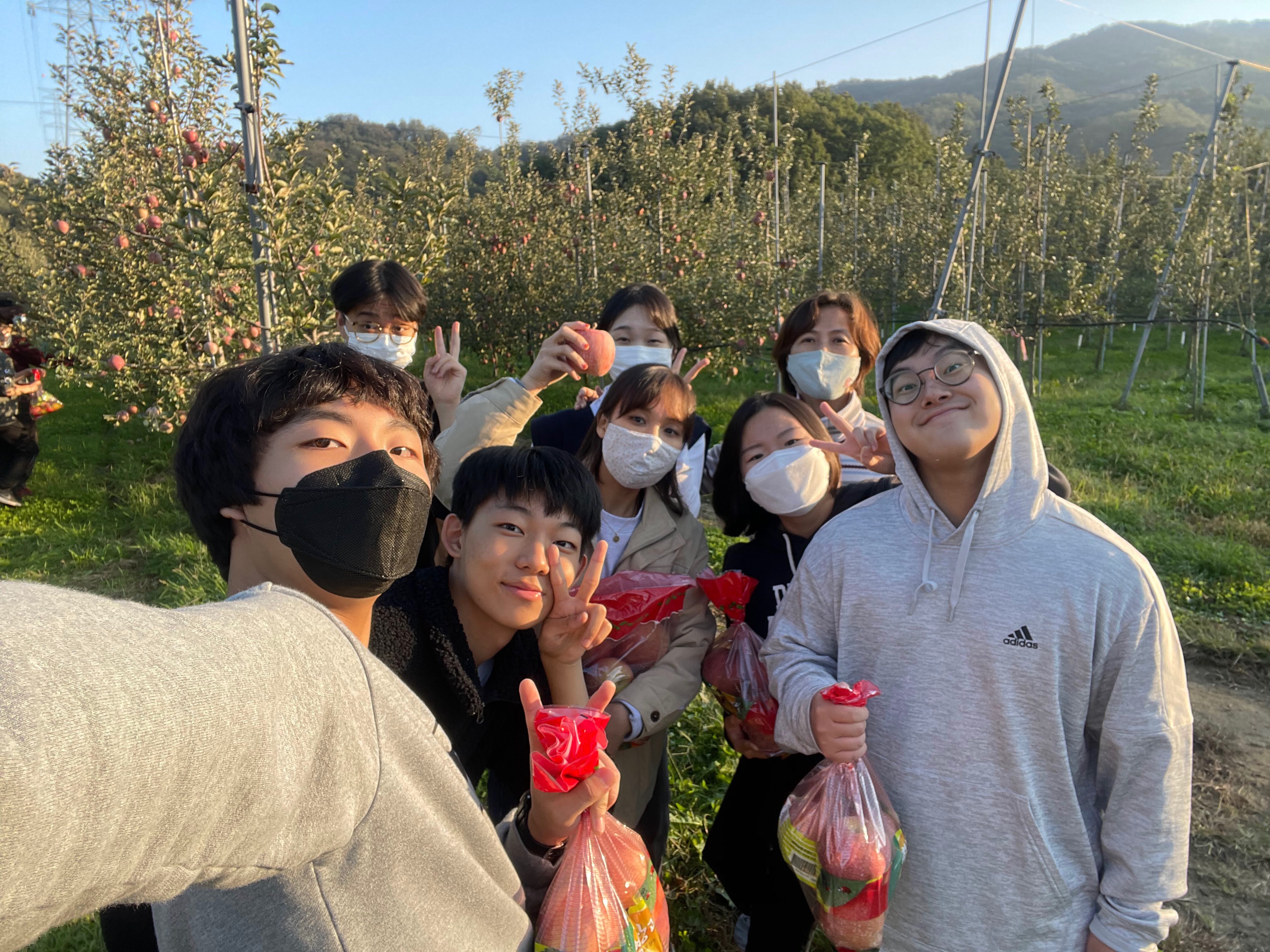 어제 우리가 직접 딴 사과를 토핑으로 얹어서 피자도 만들고 핫도그도 만들어 먹었어요. 사진 보니까 넘 먹고 싶네요.