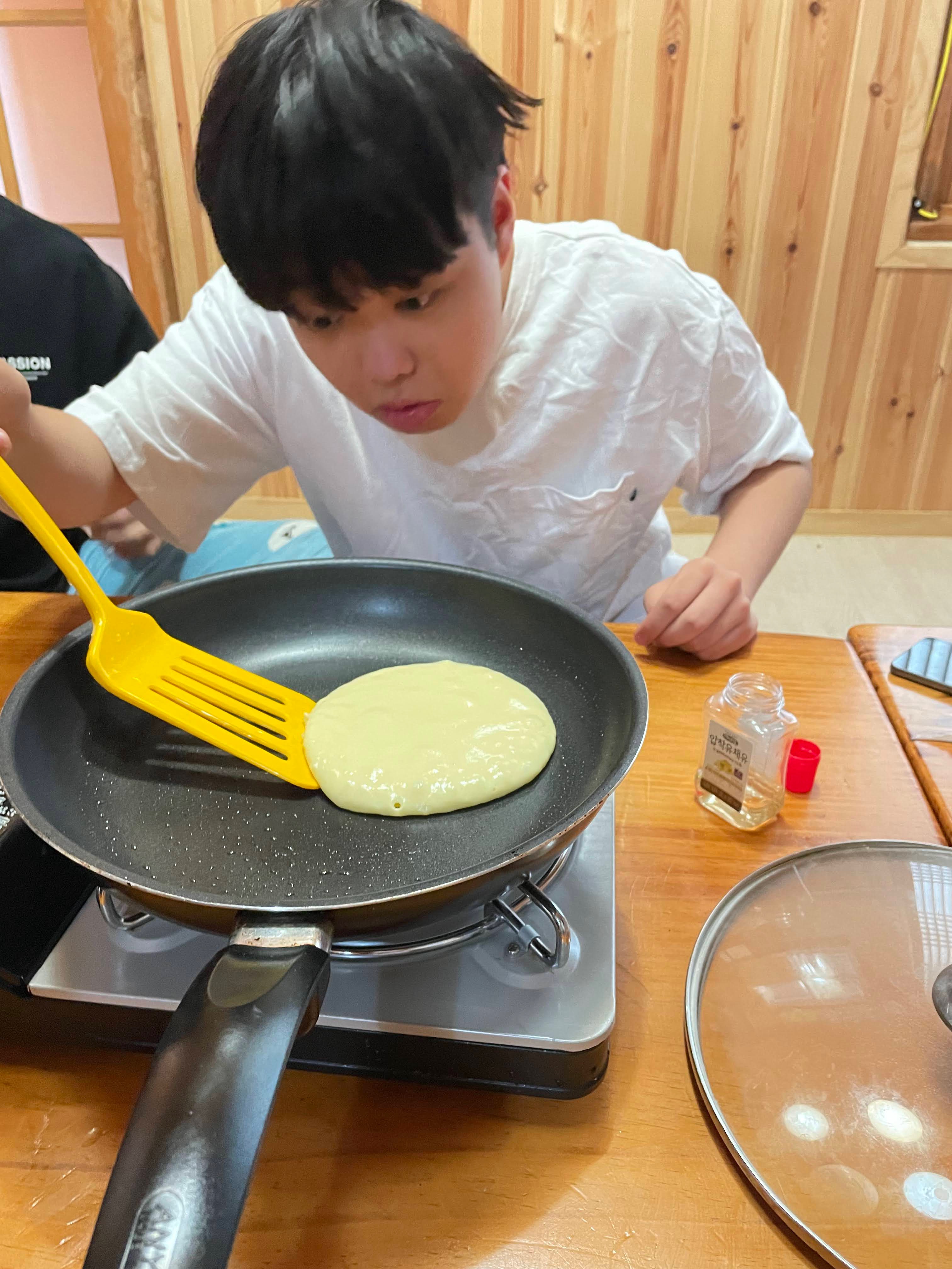 꽃친은 여행을 가면 아침은 꼭 꽃치너들이 준비한다지요. 보통 순서를 정해 돌아가면서 아침식사 준비를 하는데 이날 아침은 망고가 구워준 핫케익을 먹었답니다.