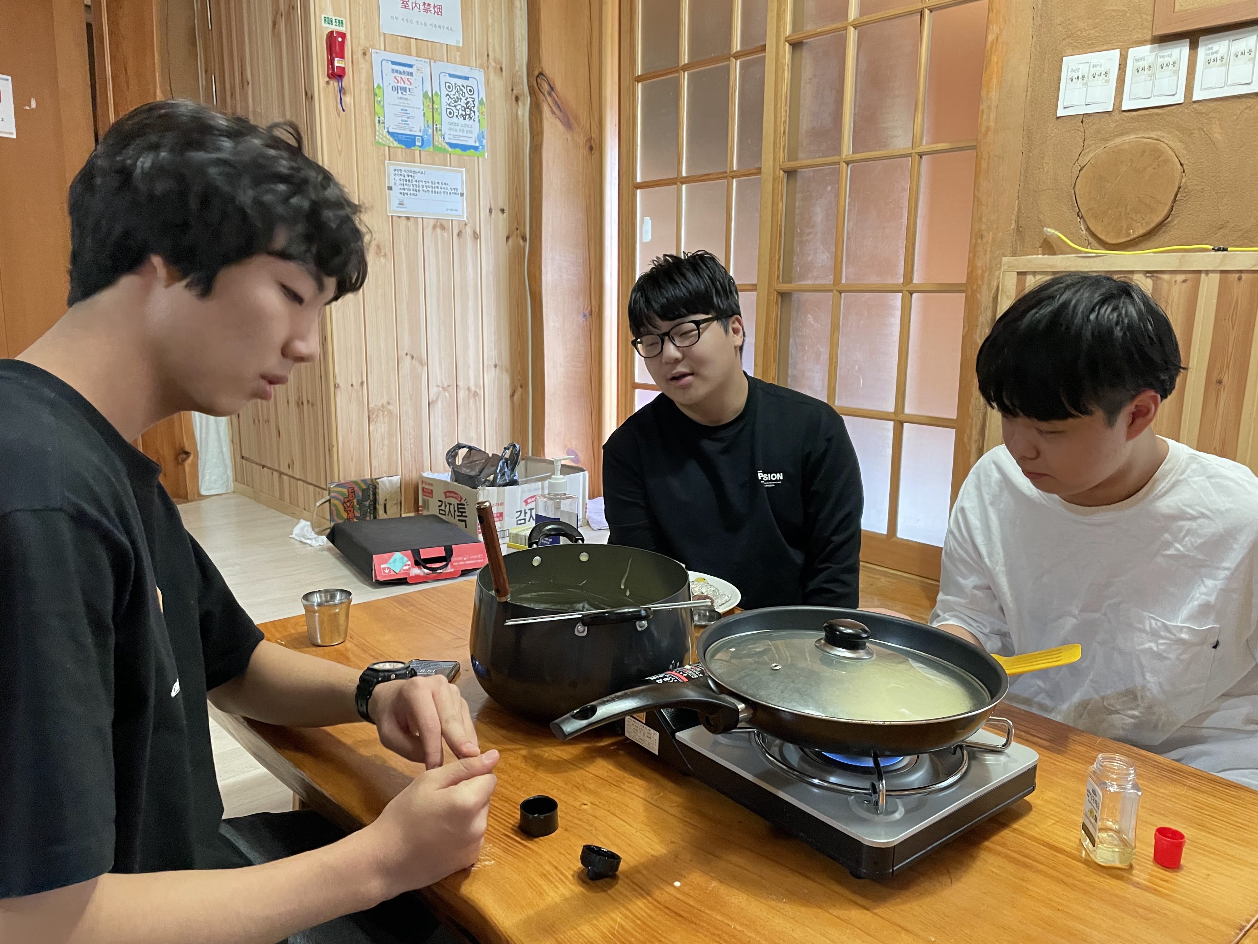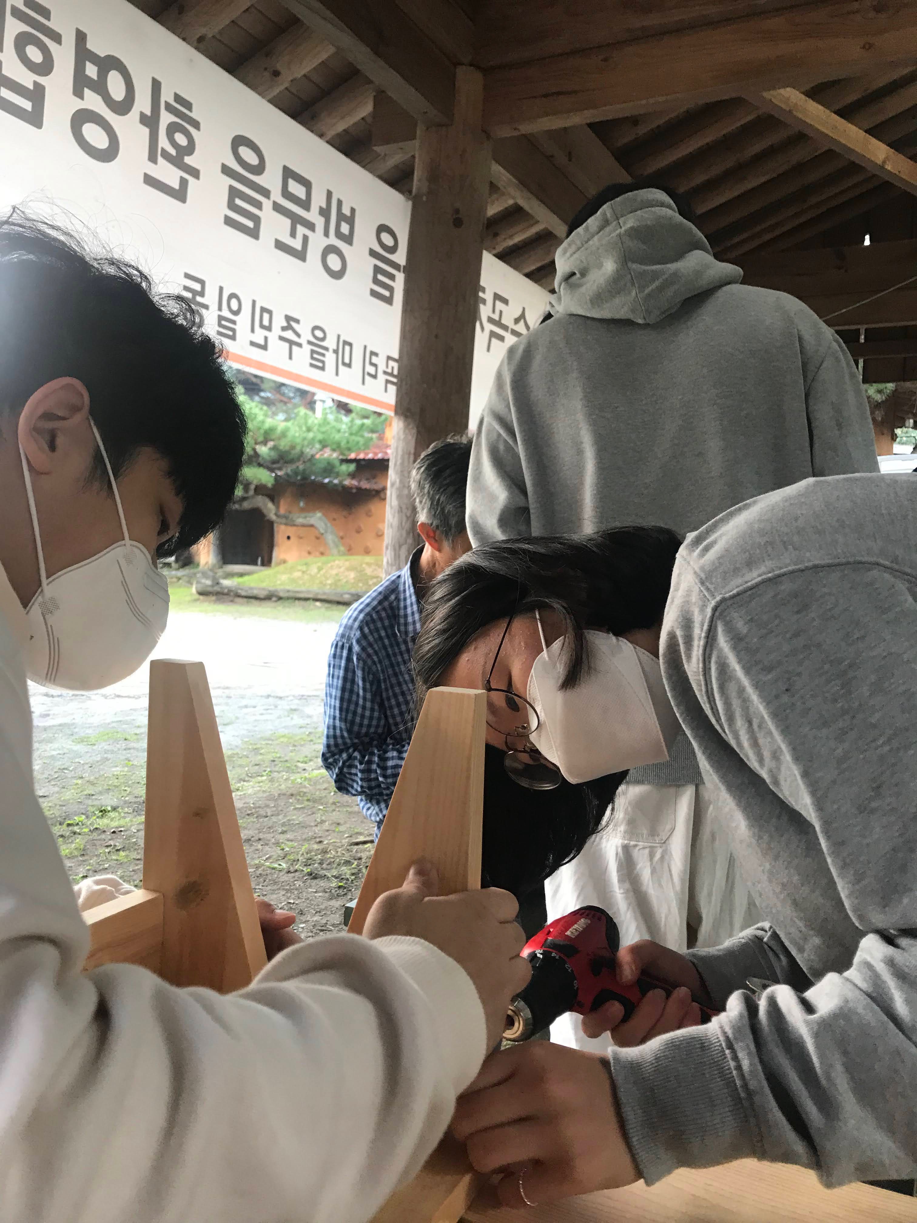 3시간이 걸려 상주에 도착한 뒤 시원한 웰컴 드링크와 함께 상주의 승곡체험마을 소개를 받았습니다. 이곳이 우리가 3일 동안 머무를 곳이에요! 첫날은 목공수업을 하고 잠시 쉬었다가 저녁엔 심혈을 기울인 라면 대회가 열렸습니다. 밤산책까지 완벽하게 마친 첫날!