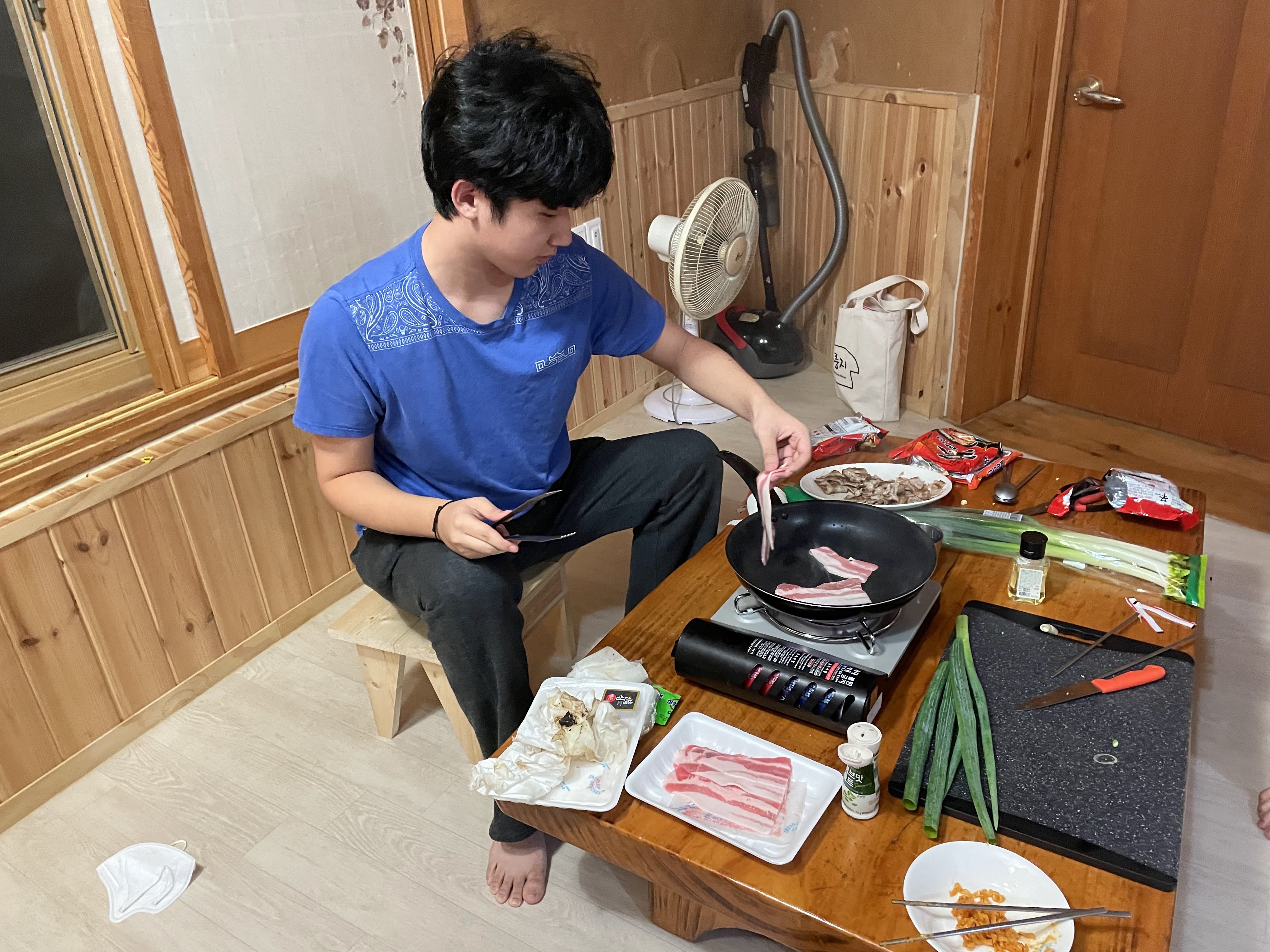 꽃친은 여행을 가면 아침은 꼭 꽃치너들이 준비한다지요. 보통 순서를 정해 돌아가면서 아침식사 준비를 하는데 이날 아침은 망고가 구워준 핫케익을 먹었답니다.