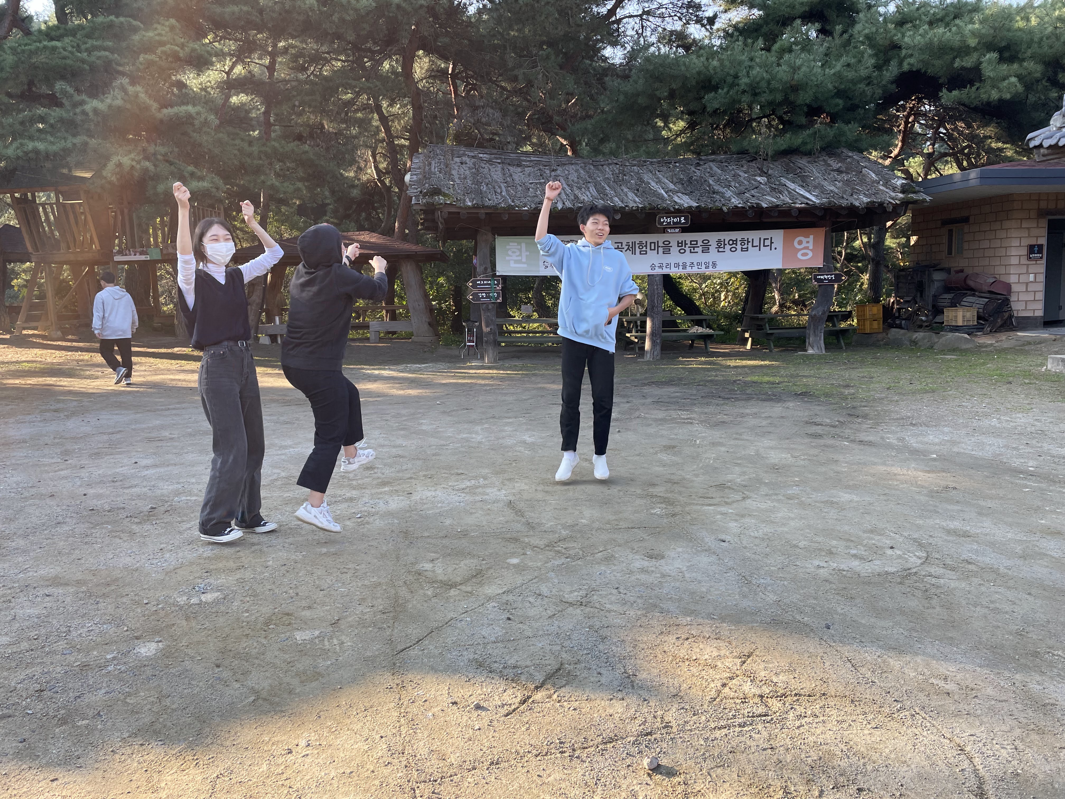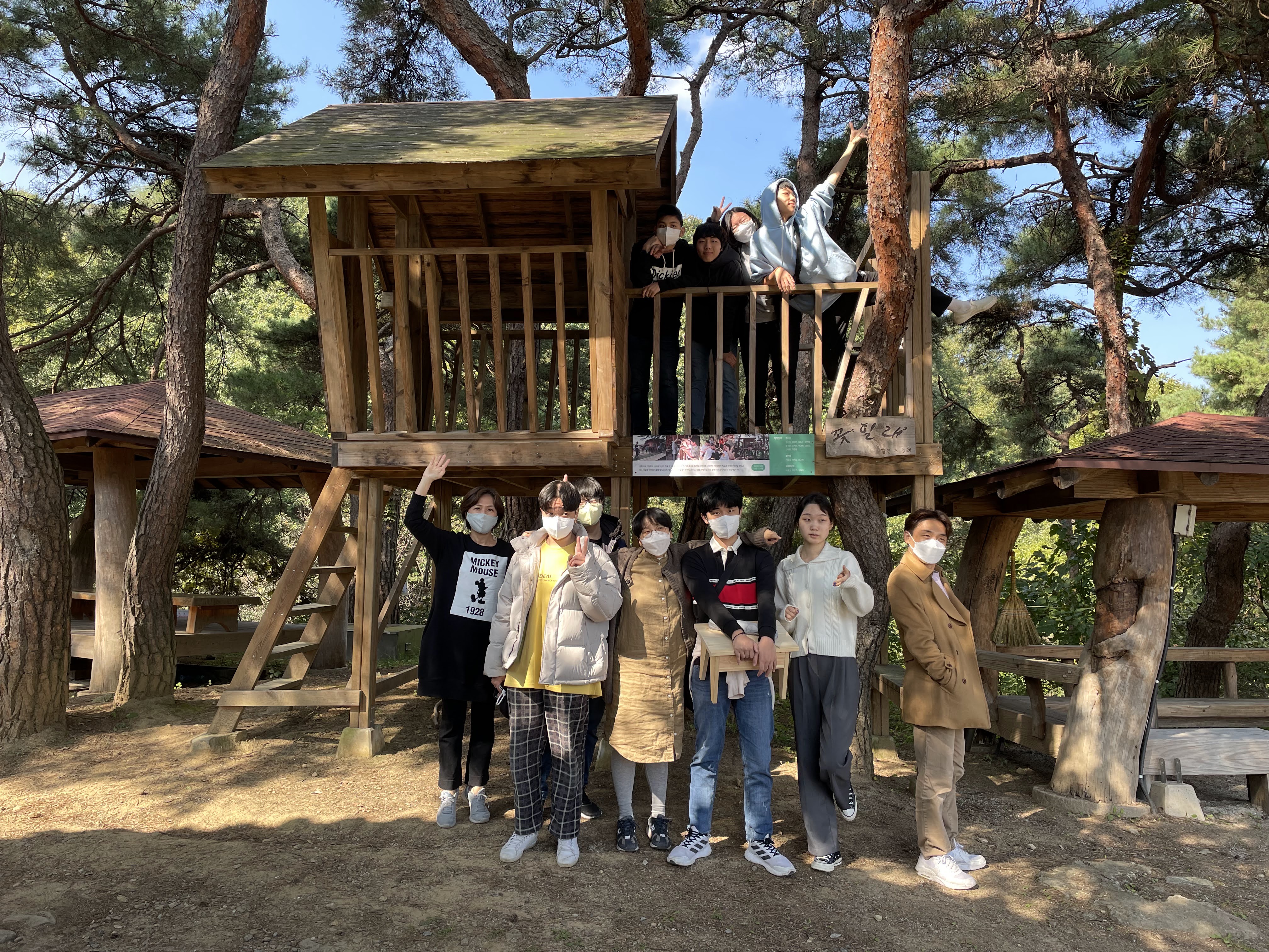 아침부터 일어나 밥 먹고 씻고 짐 챙기고 청소하느라 사진이 없네요 ㅎㅎ 마지막으로 4기 선배들이 만들어 놓은 나무놀이터 앞에 멋지게 사진 한방 팍 찍고! 꽃친의 가을 상주 여행을 마쳤습니다~