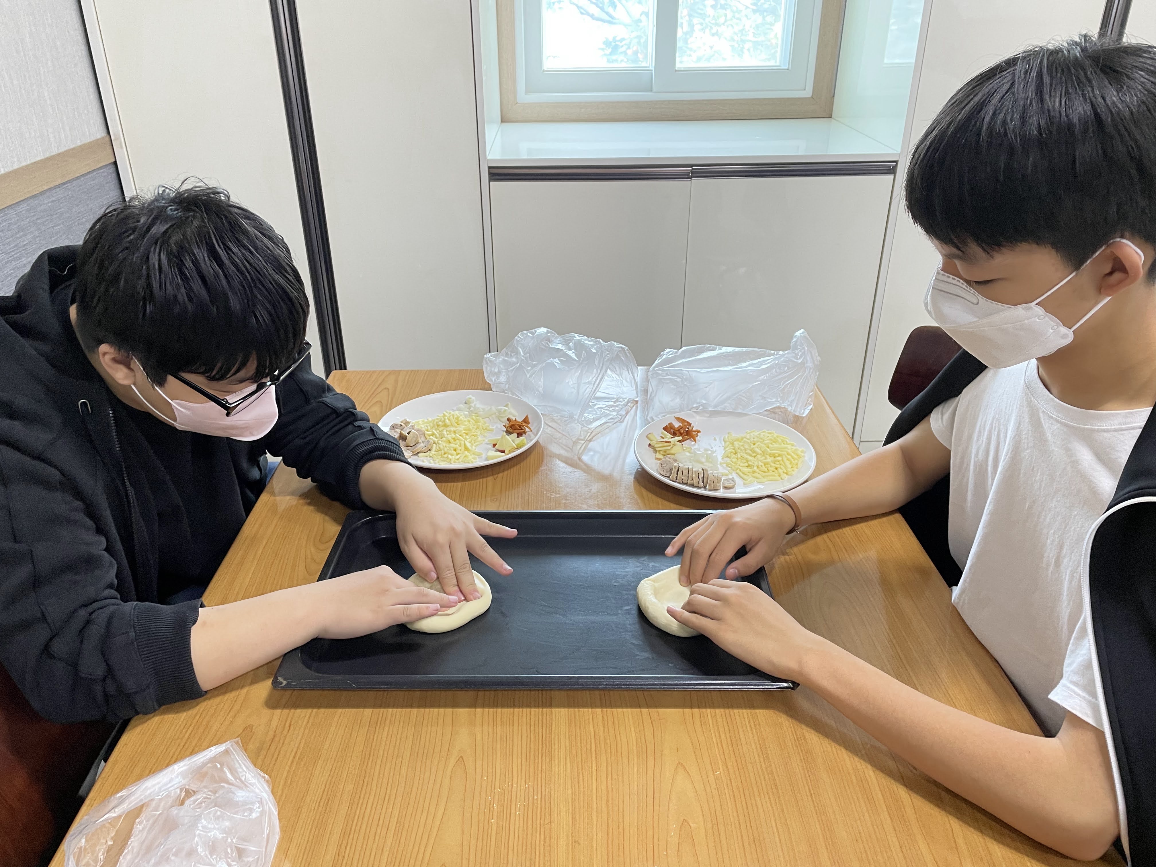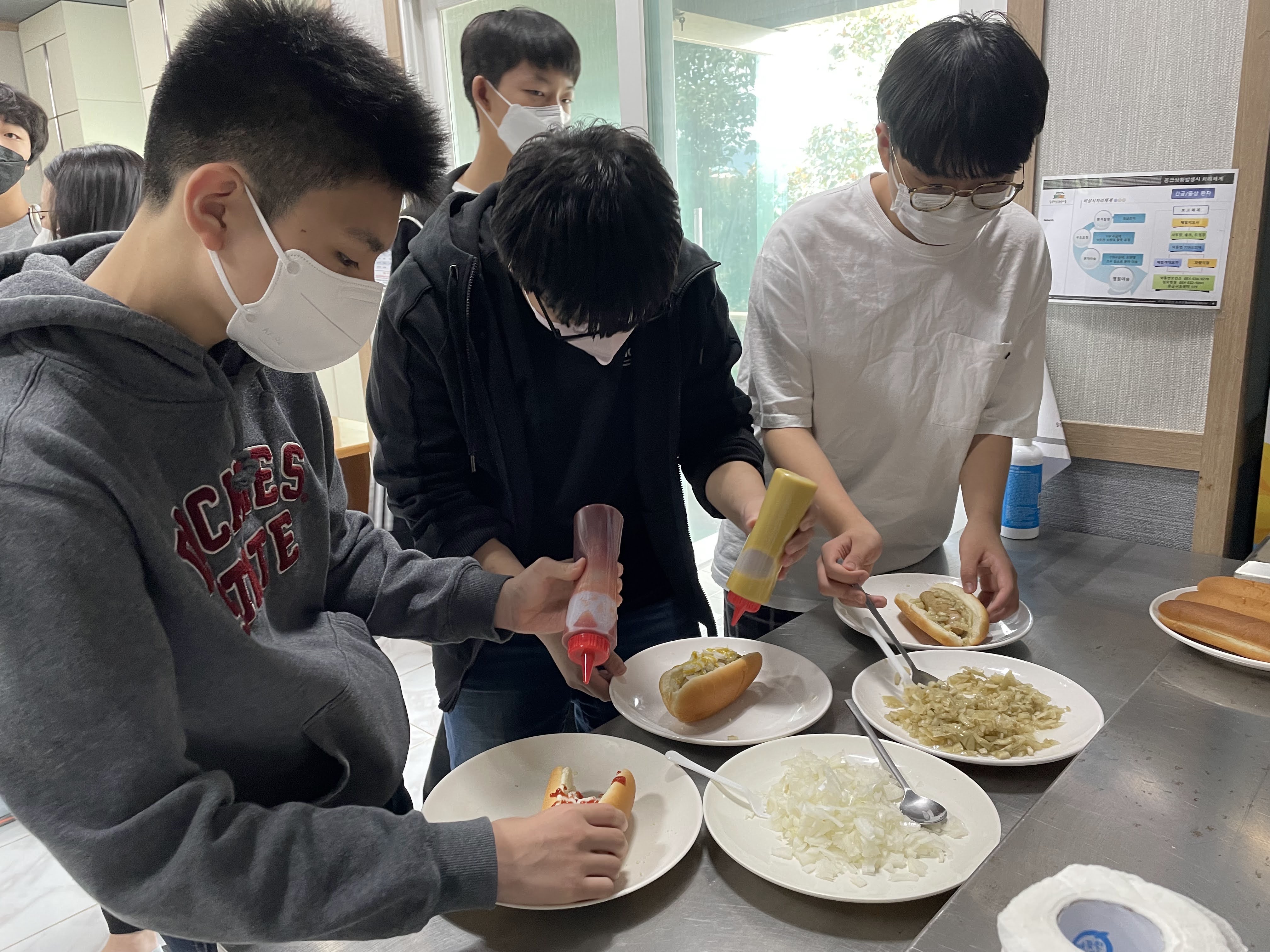 어제 우리가 직접 딴 사과를 토핑으로 얹어서 피자도 만들고 핫도그도 만들어 먹었어요. 사진 보니까 넘 먹고 싶네요.