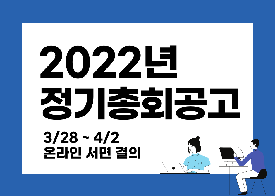 | 2022년 제 2차 정기총회 참여 안내 [3/28~4/2] (0) | 2022.03.28 |